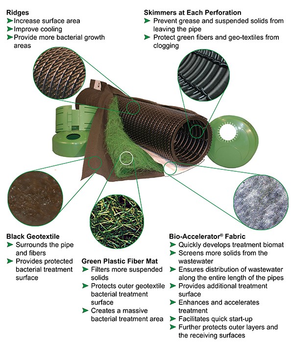 Passive onsite wastewater treatment solution for combined treatment and dispersal.